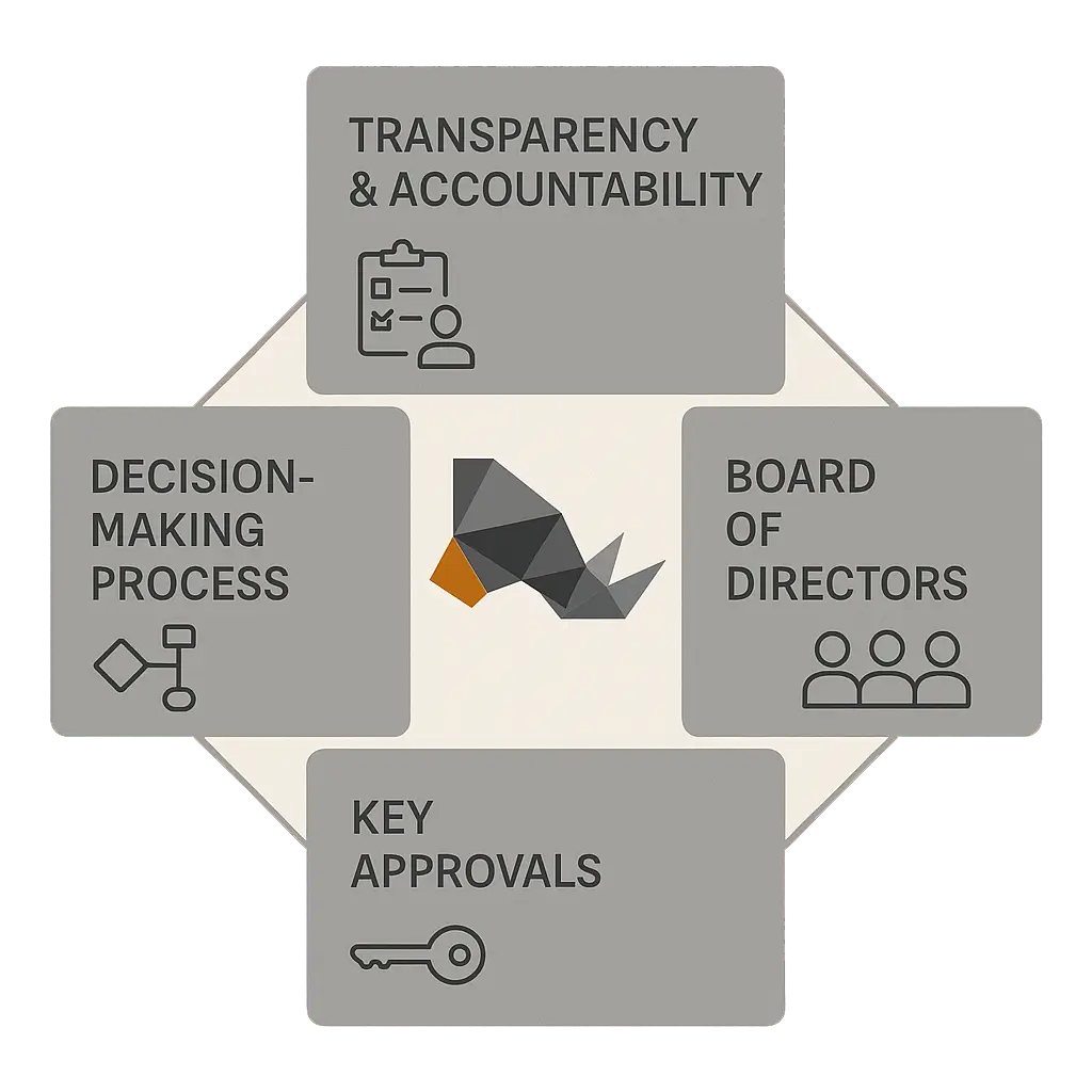 Board Approval: Required for acquisitions, profit distribution, and major decisions